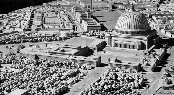 Архитектор Альберт Шпеер был одним из самых близких друзей Адольфа Гитлера и как «первый архитектор третьего рейха» занимался разработкой реконструкции Берлина, в очень футуристическом ключе. Столица Германии должна была быть большой мегаполис с массой небоскребов, огромных проспектов и исполинских стадионов. Поражение нацистов в 1945 поставило крест на начинаниях Шпеера.