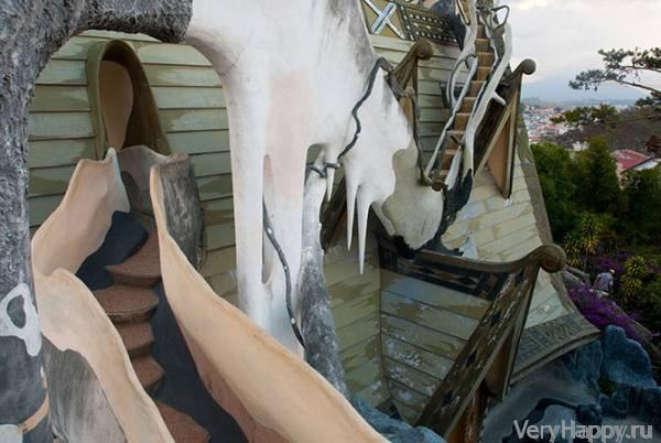 Гораздо более доступным элитной тюрьмы, как оказалось, пребывание в сумасшедшем доме. Вьетнамский отель Crazy House предлагает двухместные номера за 30 долларов за ночь.